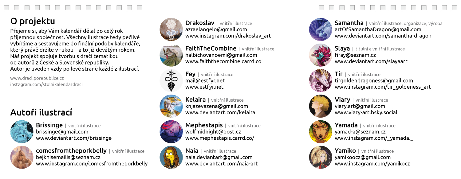 S radostí ovšem musím zdůraznit, že projekt je v tuto chvíli už zcela samostatný a otevřený všem českým a slovenským ilustrátorům! Víte o někom, kdo by se mohl mít zájem zúčastnit a nějaké ilustrace přihlásit? Nebo sami tvoříte a sbíráte odvahu se přihlásit? Můžete se se mnou spojit přímo a to buď přes mail draci@poRepublice.cz na telegramu @SamanthaDragon nebo přes instagram. Nemusíte se bát, že by někdo nějak nevhodně komentoval přihlášené ilustrace, v hlasování žádná taková možnost není :) Nejhorší, co se může stát, je že obrázek nenasbírá dostatek hlasů a do kalendáře se neumístí. A máte-li chuť si popovídat s ostatními autory a s fanoušky kalendáře, můžete se připojit do skupiny na telegramu.